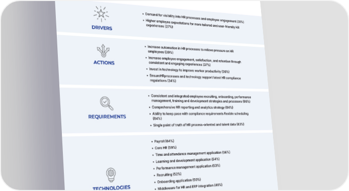 DART HCM and MODEL FRAMEWORK SAP S/4HANA • Demand for visibility into HR processes and employee engagement (31%) • Higher employee expectations for more tailored and user-friendly HR experiences (27%) DRIVERS • Increase automation in HR processes to relieve pressure on HR employees (39%) • Increase employee engagement, satisfaction, and retention through consistent and engaging experiences (37%) ACTIONS • Invest in technology to improve worker productivity (36%) • EnsureHRprocesses and technology support latest HR compliance regulations (34%) • Consistent and integrated employee recruiting, onboarding, performance management, training and development strategies and processes (86%) • Comprehensive HR reporting and analytics strategy (84%) • Ability to keep pace with compliance requirements flexible scheduling REQUIREMENTS (84%) • Single point of truth of HR process-oriented and talent data (83%) • Payroll (64%) • Core HR (59%) • Time and attendance management application (56%) • Learning and development application (54%) • Performance management application (53%) • Recruiting (52%) • Onboarding application (50%) TECHNOLOGIES • Middleware for HR and ERP integration (46%) • Compensation management (46%) • HR analytics application (38%) • Cloud security and data privacy (e.g. GDPR) monitoring solutions (35%) • End-to-end cloud-based HR platform (35%) SAPinsider Benchmark Report | HCM and SAP S/4HANA 9
