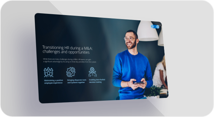 Transitioning HR during a M&A: challenges and opportunities While there are many challenges during a M&A, HR teams can gain a signi昀椀cant advantage by focusing on three key priorities from the outset: Maintaining a positive Bringing disparate tools Enabling data-fuelled employee experience and systems together decision making 6