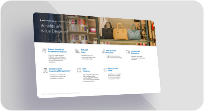 CASE STUDY #02: MULTINATIONAL LUXURY GROUP Benefits and Value Delivered Robust foundation Reduced Best-practice Standardized for real-time features Costs Processes Operations Inventory checks, in-store Elimination of excess Single process on functions Integration of POS helps pickup for online purchases, systems and people costs such as reporting and auditing maintain common back-office and ability for sales associates across three brands operations to reserve a product for customers Cross Channel One Omnichannel Inventory Management Platform Model Visibility of channel specific Replacing seven ERP systems Simplified cross company inventory for cross channel with one single global transactions to support inventory consumption multiband platform helped Omni Channel and other streamline processes and data distribution processes across the company 6 © 2022Rizing LLC or a Rizing LLC affiliate company. All rights reserved.